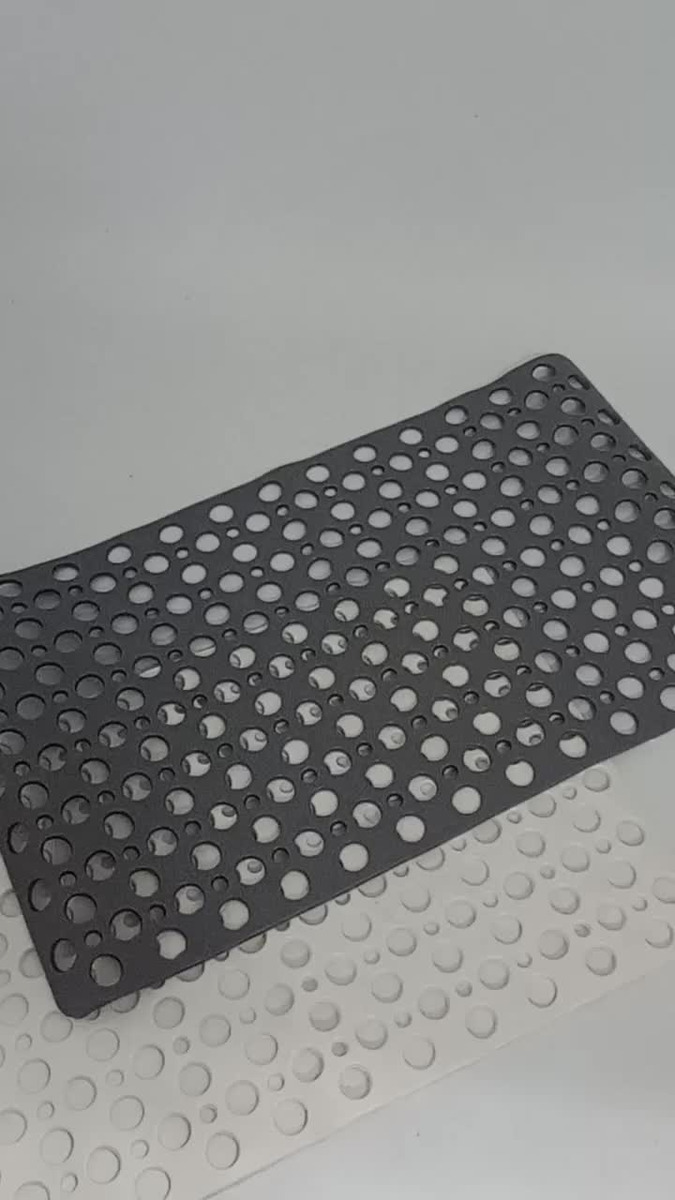 La alfombra de baño es de excelente calidad, con un material robusto y buena adherencia al piso, lo que proporciona seguridad al ducharse. Es amplia y cómoda, con un tamaño adecuado para una buena pisada.