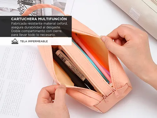 Cartuchera Escolar Multifuncional Impermeable Doble Cierre Color Rosa Lisa