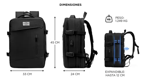 Mochila South Port Urbana Impermeable Acolchonada y Resistente Negro 30L