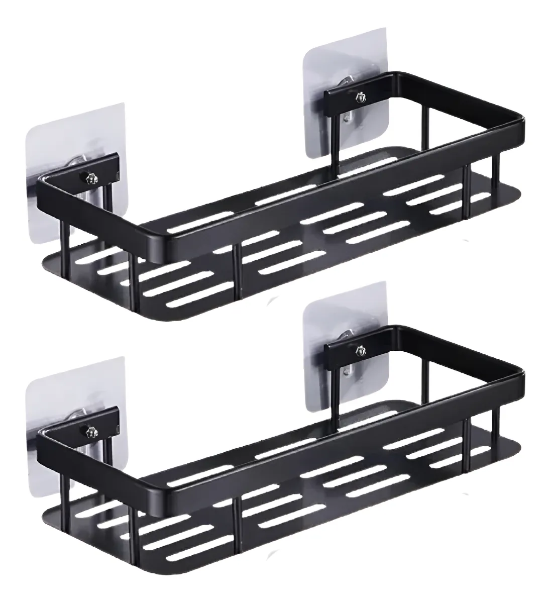 Pack x2 Estantes Repisas Con Adhesivos Para Ducha, Baño y Cocina — Organizador Baño Ducha Metálico Negro Mate con Instalación sin Perforaciones Estante Shampoo Jabonera Levys Bazar