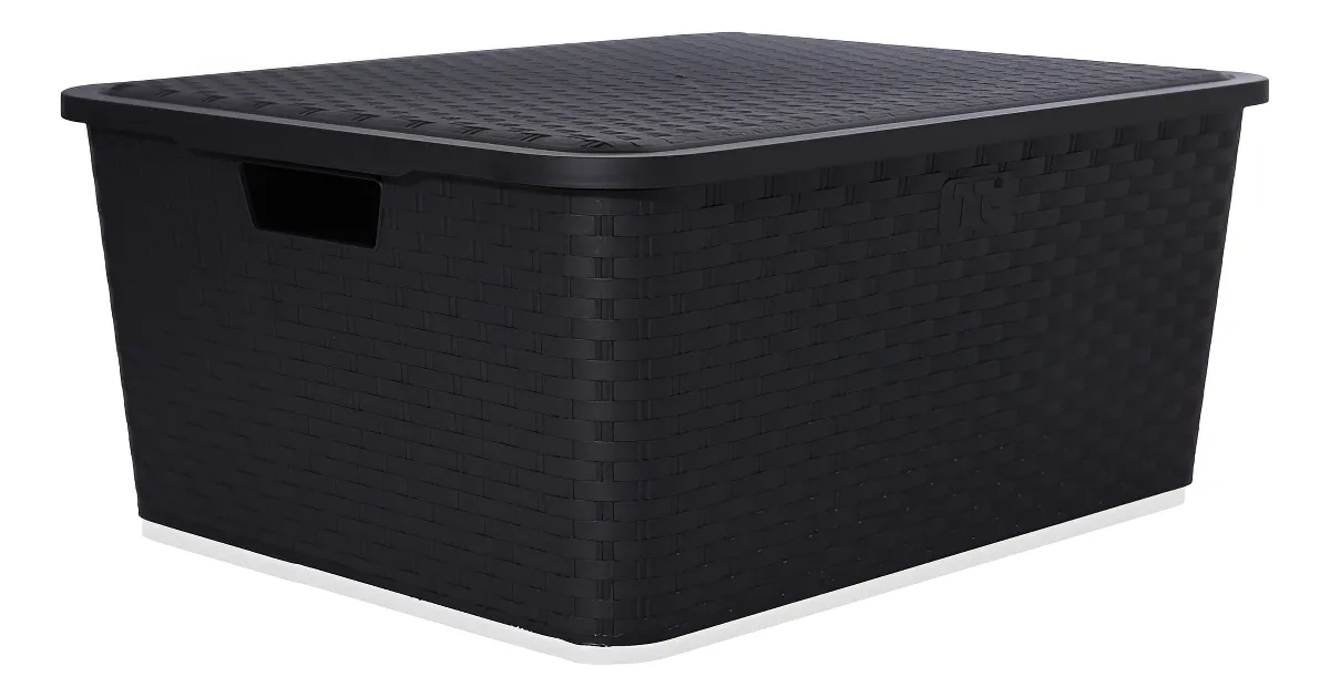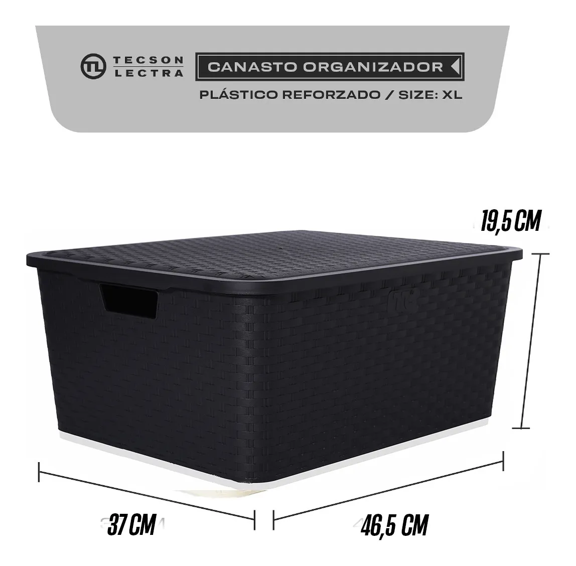 Canasto Cajón Organizador Rattan Plástico Premium Grande Xl Color Negro / Full Black