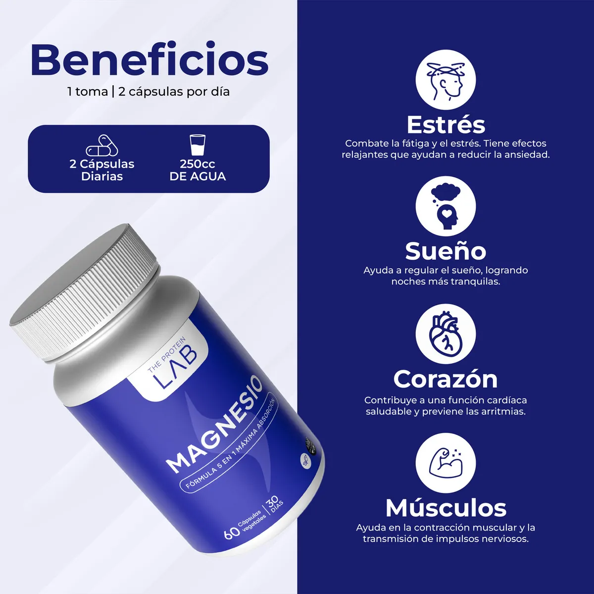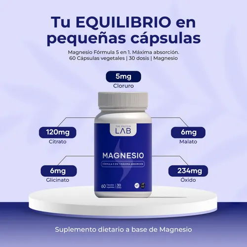 Magnesio 5 en 1 The Protein lab – 400mg Cápsulas Vegetales 3 Frascos Sin Sabor – Estrés, Sueño y Relajación