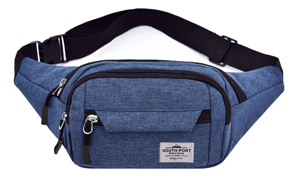 Riñonera Unisex Bandolera Porta Celular Tarjeta X4 Cierres Color Azul