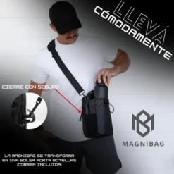 Bolso Gimnasio Magnético Deportivo Botellero Bandolera Gym Negro Lisa