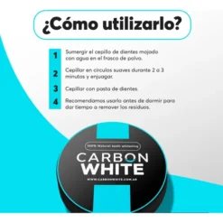Para utilizarlo, simplemente mojá tu cepillo de dientes, escurrí el exceso de agua, sumergilo en el polvo blanqueador y cepillá suavemente durante dos a tres minutos. Enjuagá bien y completá la limpieza con tu pasta dental habitual. Se recomienda usarlo todos los días durante los primeros catorce días, y luego continuar con dos a tres aplicaciones por semana como mantenimiento.