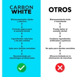 Está formulado con carbón activado de coco y coco orgánico, sin aditivos químicos ni saborizantes artificiales. No contiene peróxidos ni flúor, lo que lo hace ideal para personas con dientes sensibles. No tiene sabor ni olor y es un producto 100 % vegano y cruelty free. El envase de 30 gramos rinde aproximadamente hasta seis semanas de uso regular.