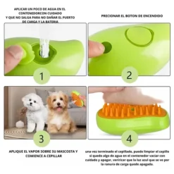 Cepillo De Vapor Para Mascotas 3 en 1 Con Spray y Masajeador