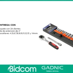 – El trinquete reversible gira en sentido horario y antihorario y tiene un botón de liberación rápida para cambiar fácilmente el casquillo.