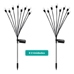 La caja incluye 2 estacas solares ramo de 8 leds.