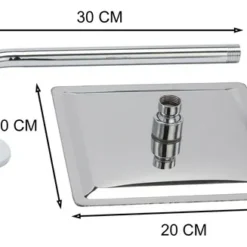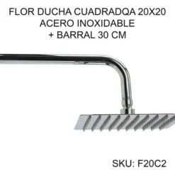 Flor de Ducha Cuadrada 20×20 Cm Acero Inoxidable Acabado Ultra Fino Con Caño De 40 Cm Baños Sanitarios