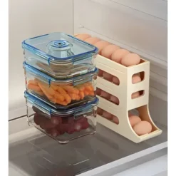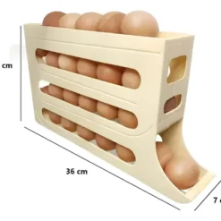 – Esto hace que funcione como dispensador, garantizando que los huevos se deslicen automáticamente a medida que se van sacando.