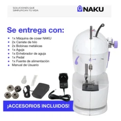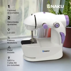 La Mini Máquina de Coser Naku MC-001 es ideal para quienes buscan una solución compacta, portátil y práctica para trabajos de costura rápidos. Perfecta para el hogar o viajes, funciona conectada a corriente o con pilas, y ofrece una puntada recta precisa.