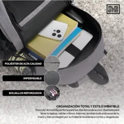 Con un diseño moderno y funcional, esta mochila ofrece un espacio adecuado para tu notebook , brindando comodidad sin sacrificar el estilo. Su durabilidad y resistencia lo convierten en la elección ideal para enfrentar el ajetreo urbano, asegurando que puedas llevar tus pertenencias esenciales de manera segura