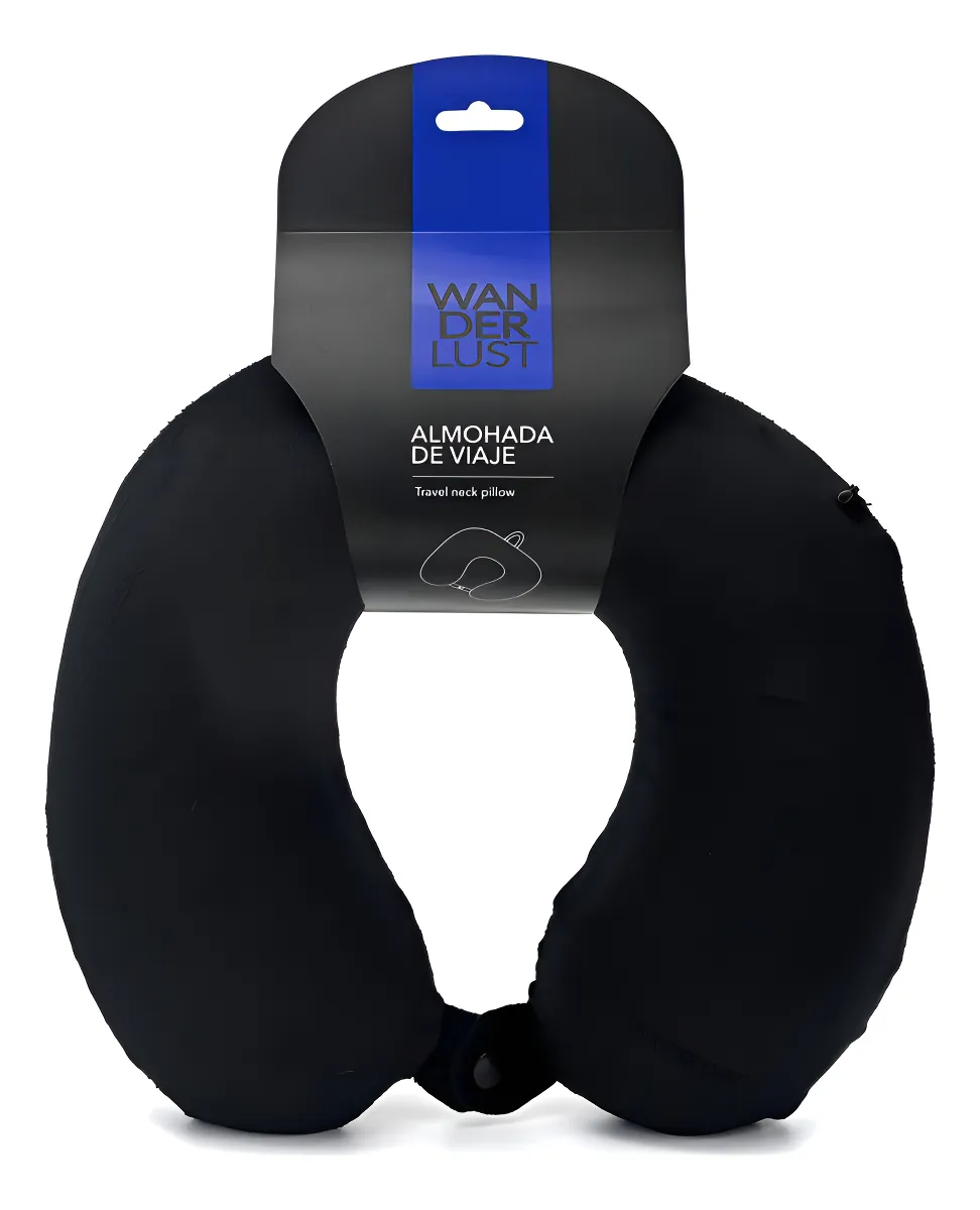 Almohada de Viaje Wanderlust Inteligente Viscoelástica Memory Foam Color Negro Liso Confort