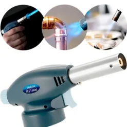 Fabricado en aluminio de alta calidad, este soplete es ligero pero resistente, pesando solo 200 g. Su tamaño compacto, con una altura de 7 cm y un largo de 17 cm, lo hace fácil de manejar y almacenar. A pesar de su pequeño tamaño, este soplete es poderoso y versátil, con una llama ajustable que te permite controlar la intensidad del calor según tus necesidades culinarias.