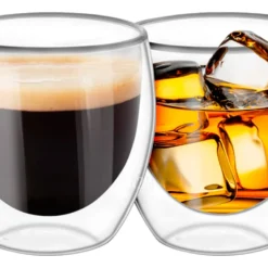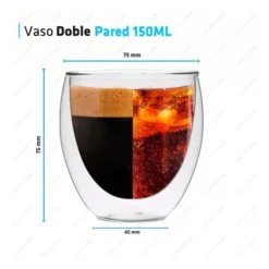 Vaso-Taza de Vidrio Doble con diseño moderno y atractivo, fabricado en vidrio resistente a temperaturas altas y bajas, manteniendo la temperatura de las bebidas por más tiempo. Versátil para uso con café, latte, macchiato, cappuccino, té helado, cerveza y cócteles.
